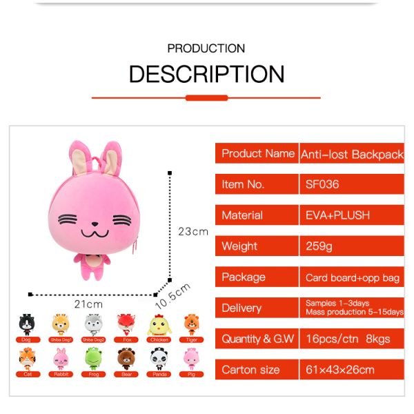 3D Plush Anti Lost Kids Animal Backpack Personalised Toddler School Bags Exquisite Design Images |